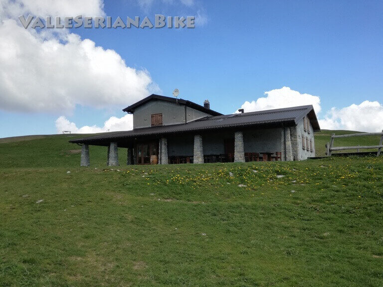 Superato il bosco su prosegue su dolci saliscendi nel mezzo di verdi prati che caratterizzano l’area, seguiamo la sterrata che corre parallela allo skilift e raggiungiamo il rifugio Magnolini da cui possiamo ammirare la Val Seriana e la val Borlezza.